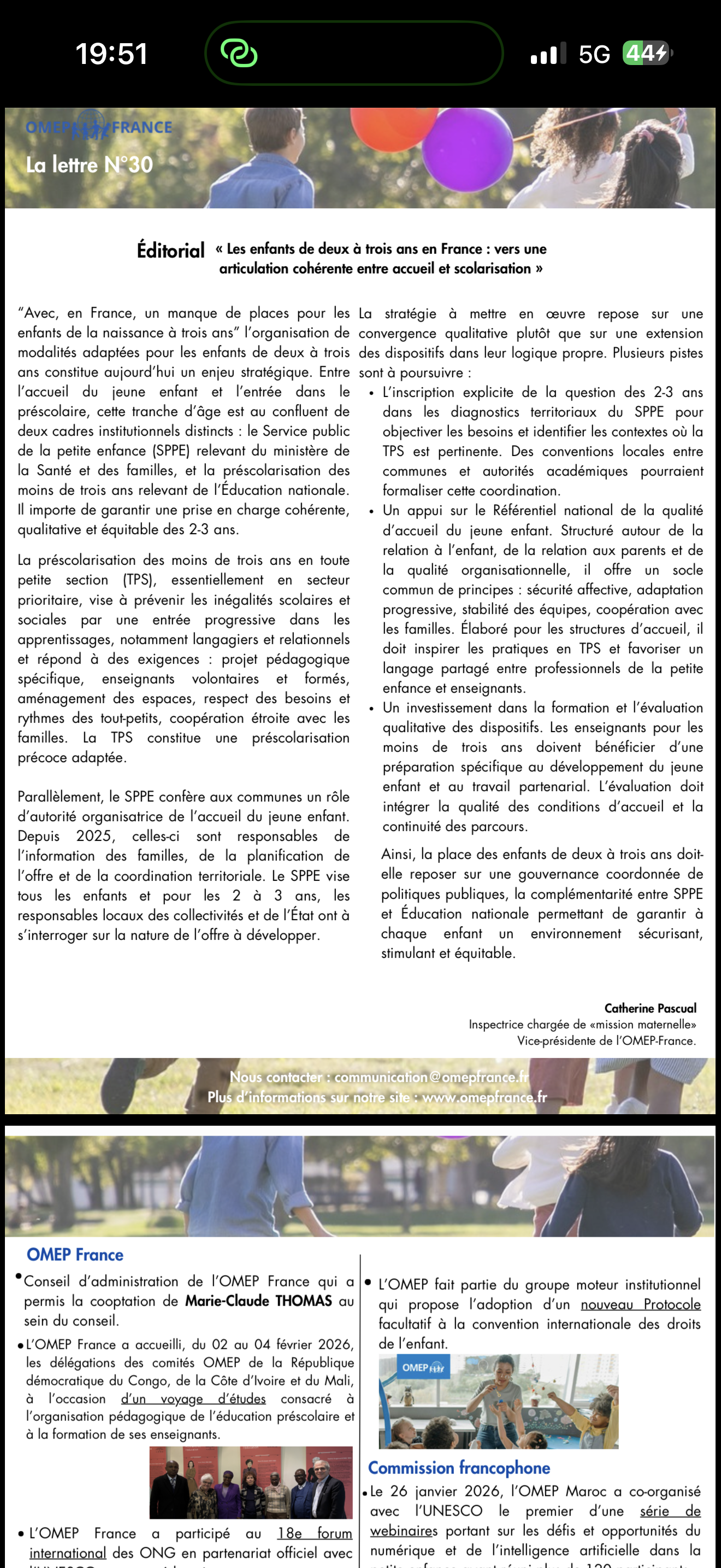 La lettre présente également les actualités, publications récentes et événements à venir, témoignant de l’engagement continu de l’OMEP France pour les droits des jeunes enfants.